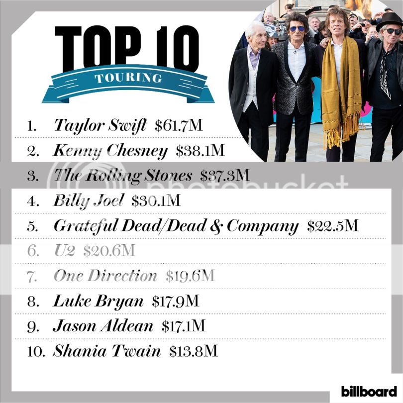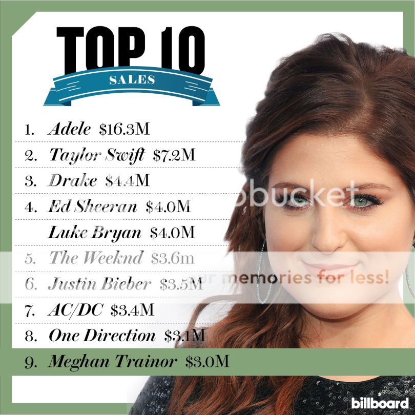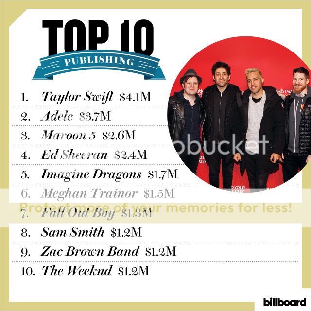 Taylor Swift held the top spots in 3 categories but Streaming, since she doesn’t have her music available on most streaming services. She was named the top earner of 2015 after successful album sales and of course her massive 1989 World Tour.